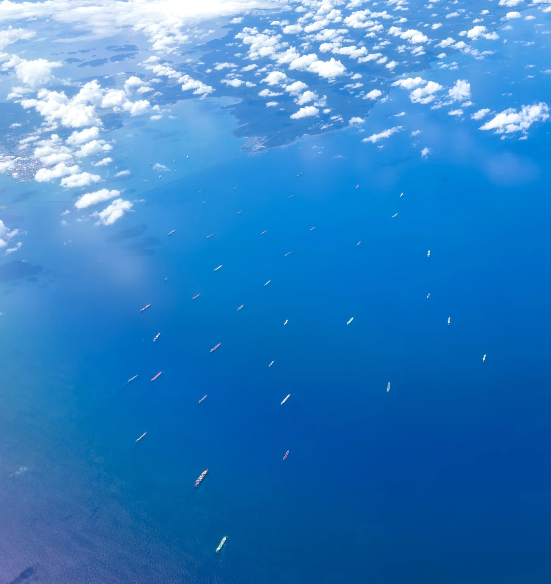Caught this image on our flight back of ships lined up for the canal